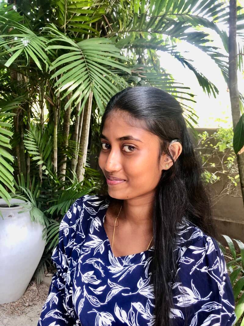Die 19-jährige Abiturientin Iruni wurde im Sommer 2023 mit finanzieller Unterstützung durch die SriLanka-Kinderhilfe mit dringend benötigten Hörgeräten versorgt, nachdem sie mehrere Jahre ohne Hörgeräte auskommen musste. Wilfried Schützeichel und Subhashini Dissanayake konnten Iruni und ihre Tante am 28.02.2024 in Colombo treffen. Iruni ist glücklich über die Hilfe von SriLanka-Kinderhilfe und kommt mit den neuen Hörgeräten sehr gut zurecht. Derzeit wartet sie auf die Ergebnisse ihrer Abiturprüfung (advanced level), absolviert verschiedene Praktika und möchte eine Ausbildung im IT-Bereich machen